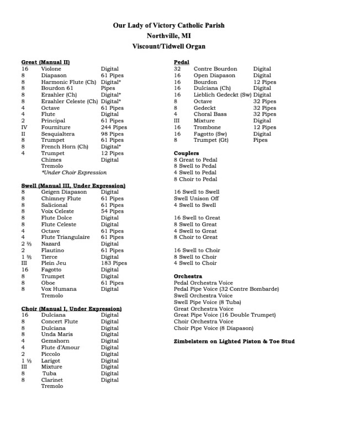 The Viscount Organs of Michigan team is delighted to announce the signing of a contract for a new custom hybrid organ for Our Lady of Victory Catholic Parish in Northville, MI.